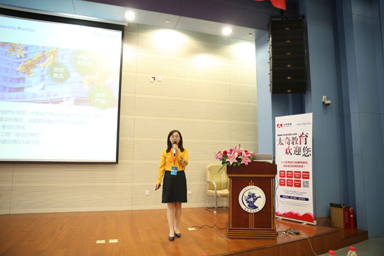 北京理工大學招生主管齊英杰老師,為到場學員介紹了北京理工大學的招生政策及項目特點,教育展現場提醒學員北理工不接受非第一志愿考生調劑,望申報學員注意。