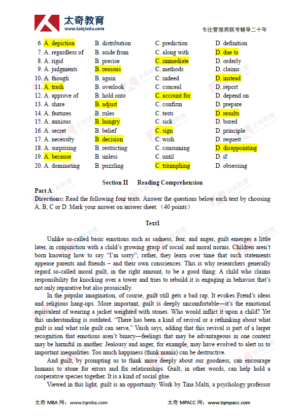 2019年管理類聯(lián)考MBA英語二真題及參考答案(2)