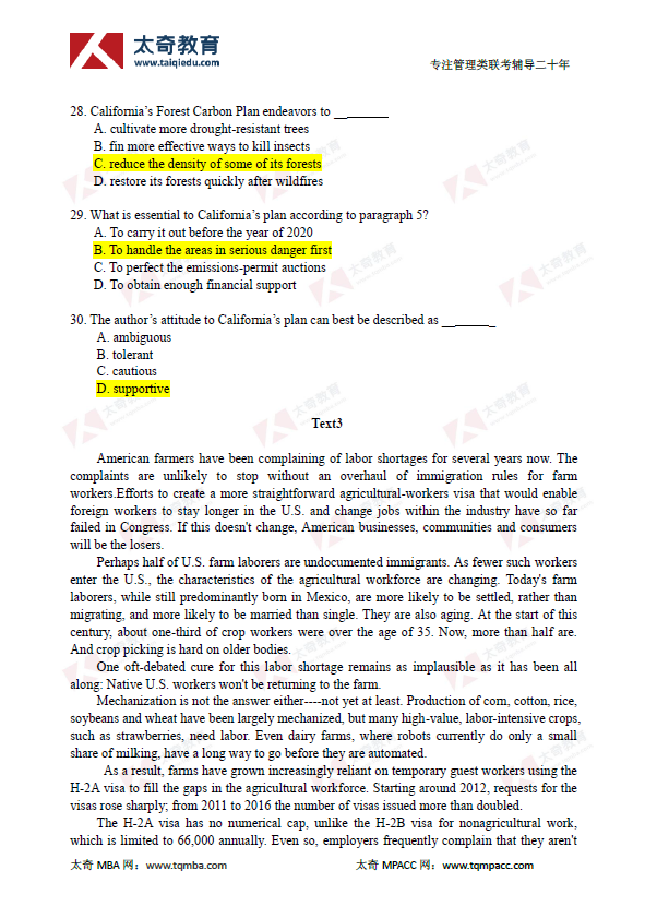 2019年管理類聯(lián)考MBA英語(yǔ)二真題及參考答案(5)