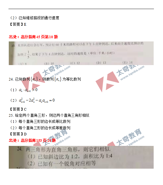 太奇2021年MBA管理類聯(lián)考數(shù)學(xué)真題命中對照(9)