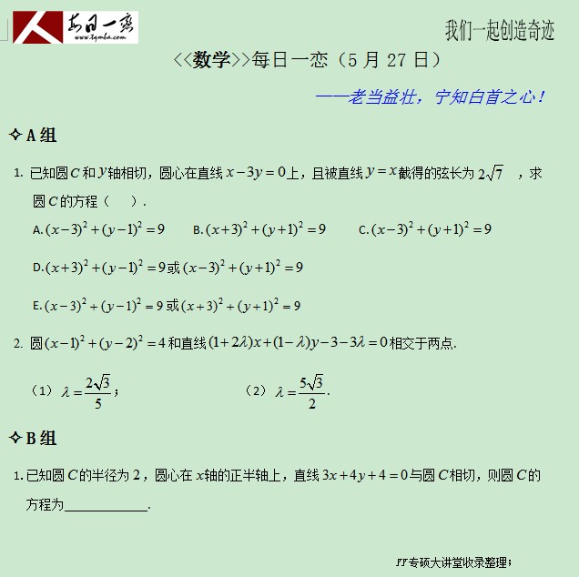 從本周一(5月26日)開始,每日一“戀”各科不再發(fā)放詳解,相關(guān)題目解析每周在太奇YY大講堂由老師進行統(tǒng)一講解,每周課程在太奇YY大講堂萬人備考群進行公布,YY群號:9444754 YY聽課頻道:57378066