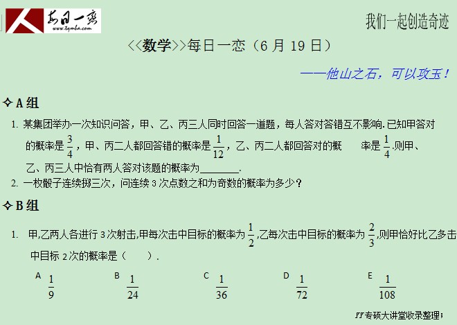 【太奇MBA 2014年6月19日】 MBA數(shù)學每日一練