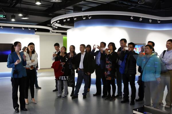 上午9:00,老師和同學(xué)們準時到達中國技術(shù)交易大廈,騰訊政府事務(wù)部高級經(jīng)理曹珅珅女士對到訪的同學(xué)和老師們進行了熱情地歡迎和接待,并帶領(lǐng)大家來到大廈5層騰訊企業(yè)文化創(chuàng)新展廳進行參觀。講解員帶領(lǐng)大家依次參觀了騰訊QQ用戶在線分布圖、微信全球活躍用戶數(shù)、互動游戲、創(chuàng)新區(qū)等,并從騰訊的發(fā)展歷程、最新戰(zhàn)略規(guī)劃、人才培養(yǎng)機制、創(chuàng)新產(chǎn)品體驗以及企業(yè)文化和員工團隊建設(shè)進行了詳細的講解。參訪的同學(xué)們認真傾聽,并不時用手機拍下自己感興趣的內(nèi)容。
