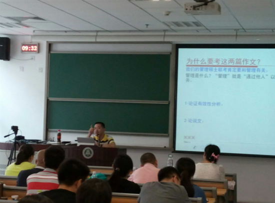 2016年8月6日9:00-16:30,太奇MBA北京林業(yè)大學(xué)校區(qū)學(xué)研中心A0304教室陳君華老師中文寫作課進(jìn)行時(shí)。中文寫作在管理類聯(lián)考中分值占比65分,太奇教育在系統(tǒng)班階段安排的寫作課共兩次。盡管分值高,課時(shí)相對(duì)較少,但真正的名師不會(huì)用課時(shí)量來要求學(xué)生。作為MBA寫作輔導(dǎo)界的一線專家,陳君華老師結(jié)合日常生活實(shí)例剖析論證有效性分析這類文章的重要性和相應(yīng)的解決思路,把握本質(zhì),透析規(guī)則,分享思想,啟迪智慧,通過課堂提問調(diào)動(dòng)更多同學(xué)積極參與,引導(dǎo)同學(xué)們課間小組討論,學(xué)員反饋是字字珠璣,閃耀著真知灼見。