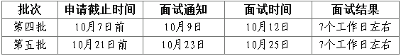第三批面試網(wǎng)上申請截止日期為9月23日晚零點,后續(xù)批次面試安排如下: